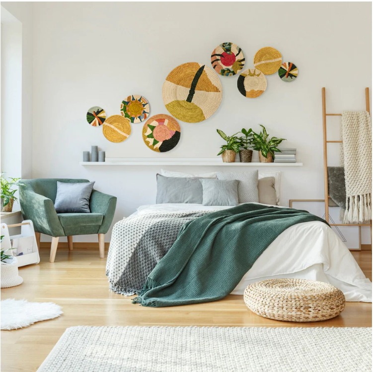 Maak van je muren echte blikvangers met de vrolijke rieten wanddecoratie van Maison Suku. Denk aan kleurrijke ronde vormen, speelse weefsels en een luchtige uitstraling die jouw ruimte direct meer leven geeft. Combineer verschillende formaten voor een eclectisch effect!