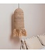 Kawah is een langere versie van onze Kalima lampenkap. Hierdoor is hij bijzonder geschikt voor plaatsen met hoge plafonds of voor het opvullen van de ruimte boven tafels. Voor Kawah wordt raffia zorgvuldig met de hand tot rotanvezels geweven. Vooral de franjes zijn een opvallend detail dat een warme, tropische sfeer in huis verspreidt.